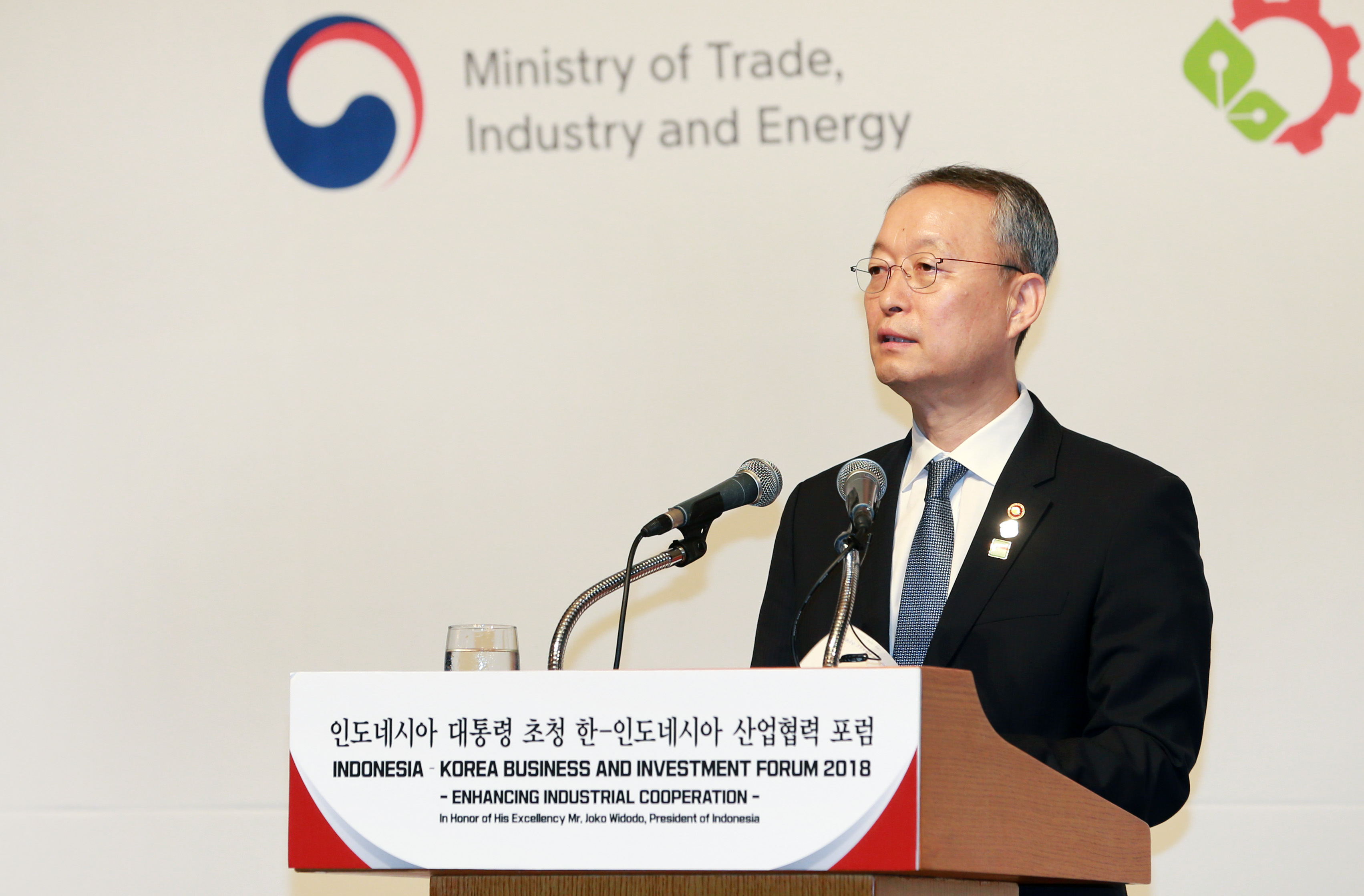 Trade, Industry and Energy Minister Paik Ungyu delivered a speech on industrial cooperation at the Korea-Indonesia Business Investment Forum attended by Indonesian President Joko Widodo in Seoul on September 10.During his welcoming remarks, Minister Paik called for strengthening cooperation between the two Asian countries in manufacturing, infrastructure, future technologies, and free and fair trade.At the forum, 15 memoranda of understanding were signed to expand and diversify areas of industri date2018-09-10