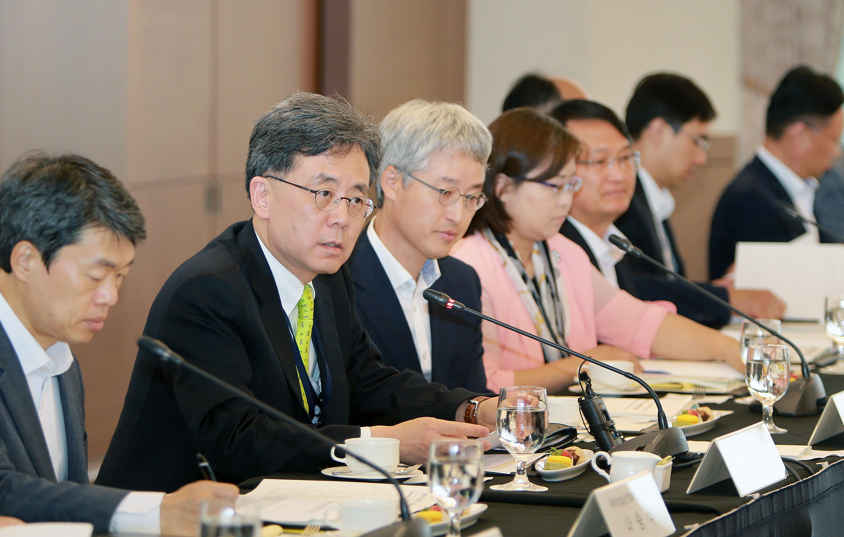 Trade Minister Kim Hyun-chong (second from left) chaired a meeting to discuss recent international trade issues and review existing free trade agreements with government officials, industry representatives, and academics in Seoul on September 20.During his opening remarks at the meeting, Minister Kim said that global trade conditions are rapidly changing as a result of rising protectionism, ongoing U.S.-China trade dispute, and advancing fourth industrial revolution technologies.The Ministry's t date2018-09-20