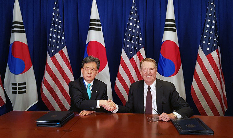 Trade Minister Kim, USTR Lighthizer sign revised KORUS FTA