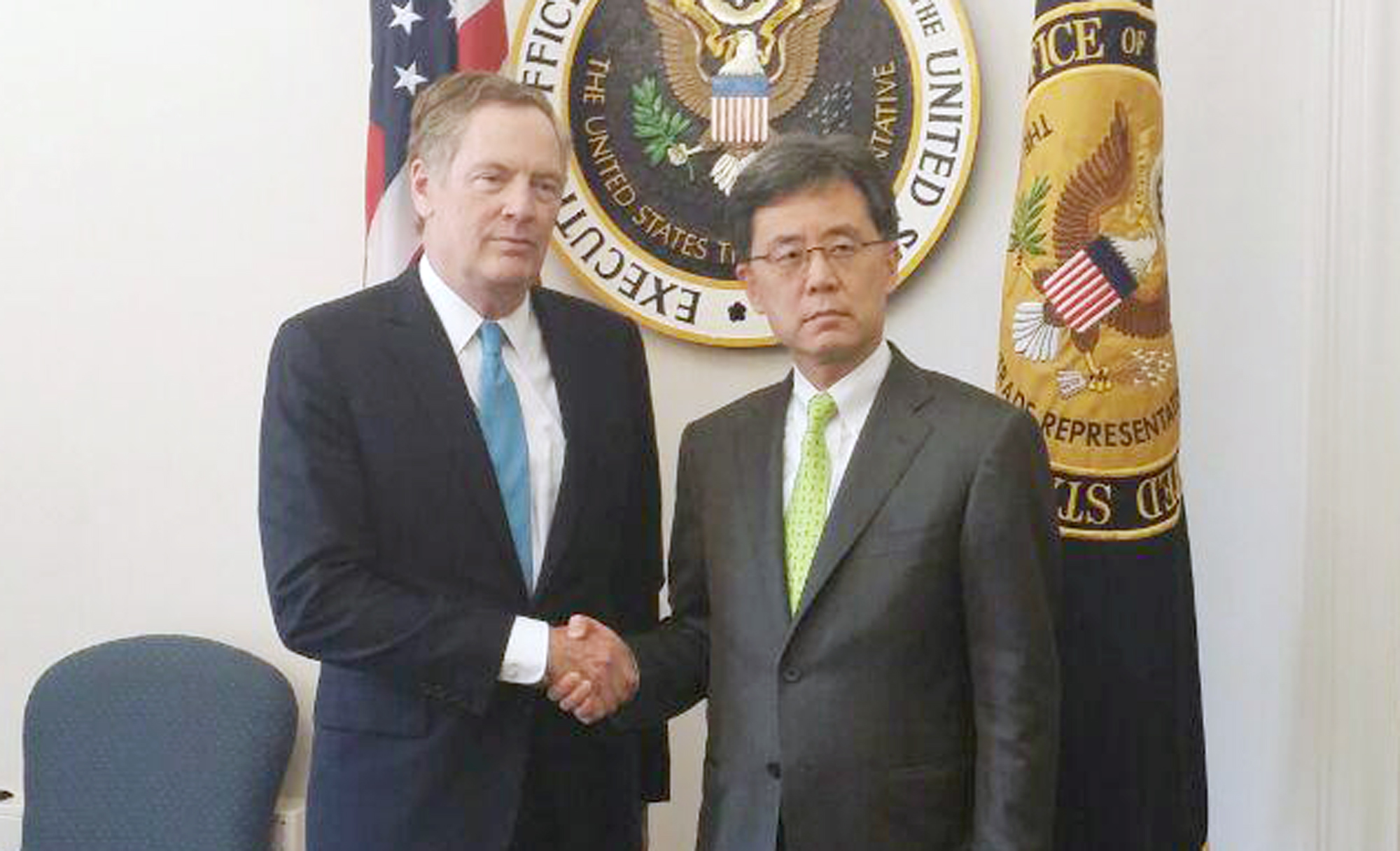 Trade Minister Kim Hyun-chong (right) met with U.S. Trade Representative Robert Lighthizer to discuss the follow-ups for updating the Korea-US free trade agreement in Washington on July 27. The two countries had reached an agreement in principle on reforming the six-year-old Korea-US trade pact in March 25 this year and since then, they have taken measures required for the signing. The Minister also delivered Korea’s views to the U.S. chief trade negotiator on why t date2018-07-28