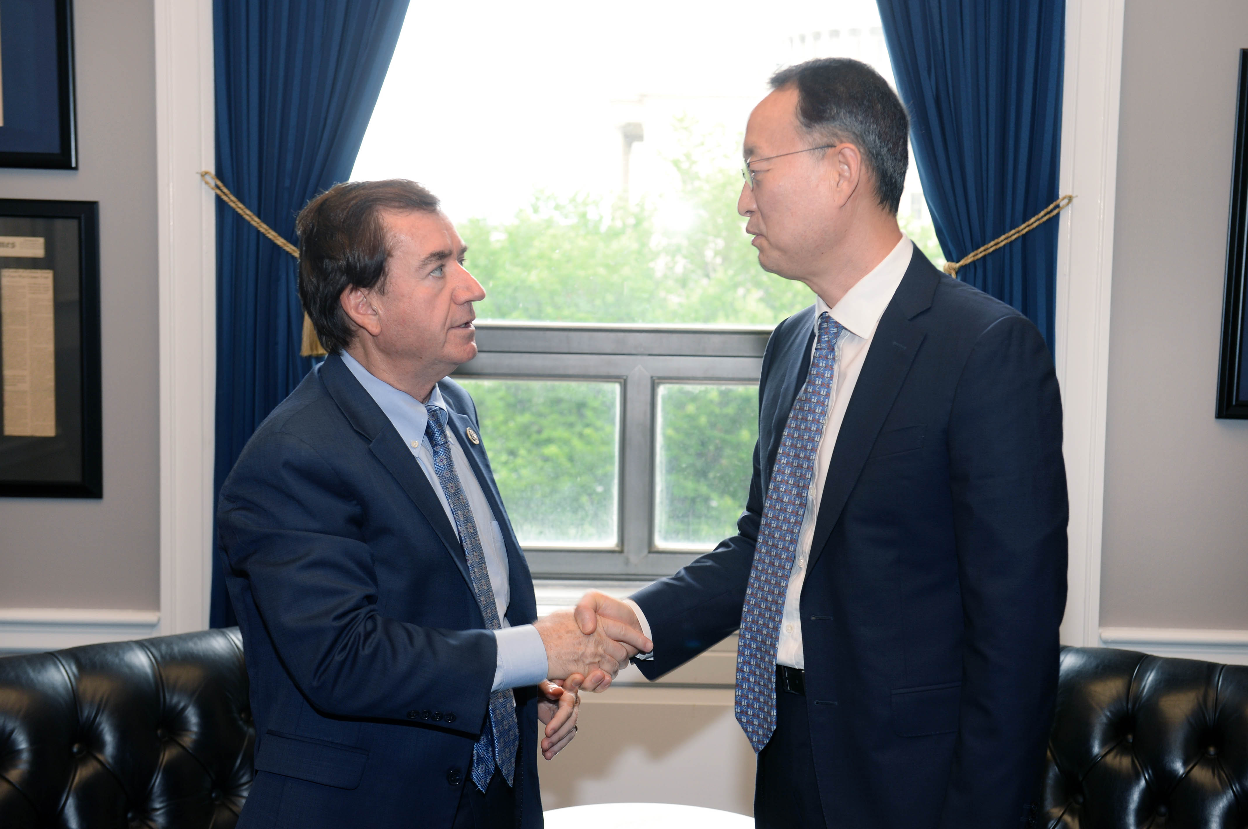 Minister of Trade, Industry and Energy Paik Ungyu (right) met with U.S. House Committee on Foreign Affairs Chairman Ed Royce to discuss trade and other related issues in Washington, D.C., on June 27. During the meeting, the minister expressed his concerns to the U.S. lawmaker about the U.S. investigation into imported automobiles based on national security concerns, and said he hoped that the free, fair and reciprocal trade that could be achieved by the Korea-U.S. free trade agreement s date2018-06-28