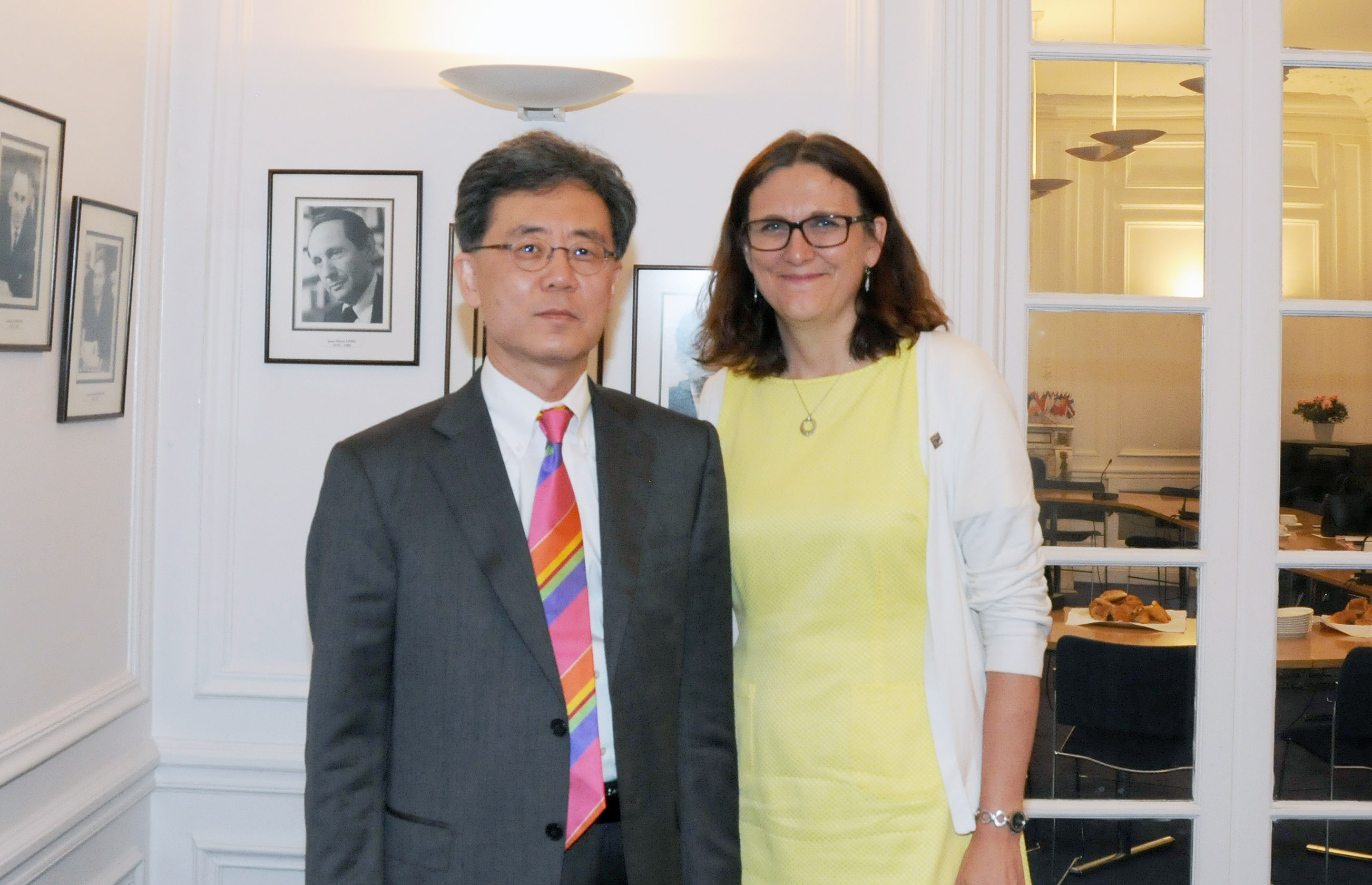 Trade Minister Kim Hyon-chong (left) met European Commissioner for Trade Cecilia Malmström and other EU officials, to discuss trade issues in Paris on June 1. During the meeting, Trade Minister Kim raised concerns about safeguard investigations into imported steel products currently being carried out by the EU, and suggested measures to improve current multilateral trade rules in light of the fourth industrial revolution. Trade Minister Kim is visiting Europe this we date2018-06-02
