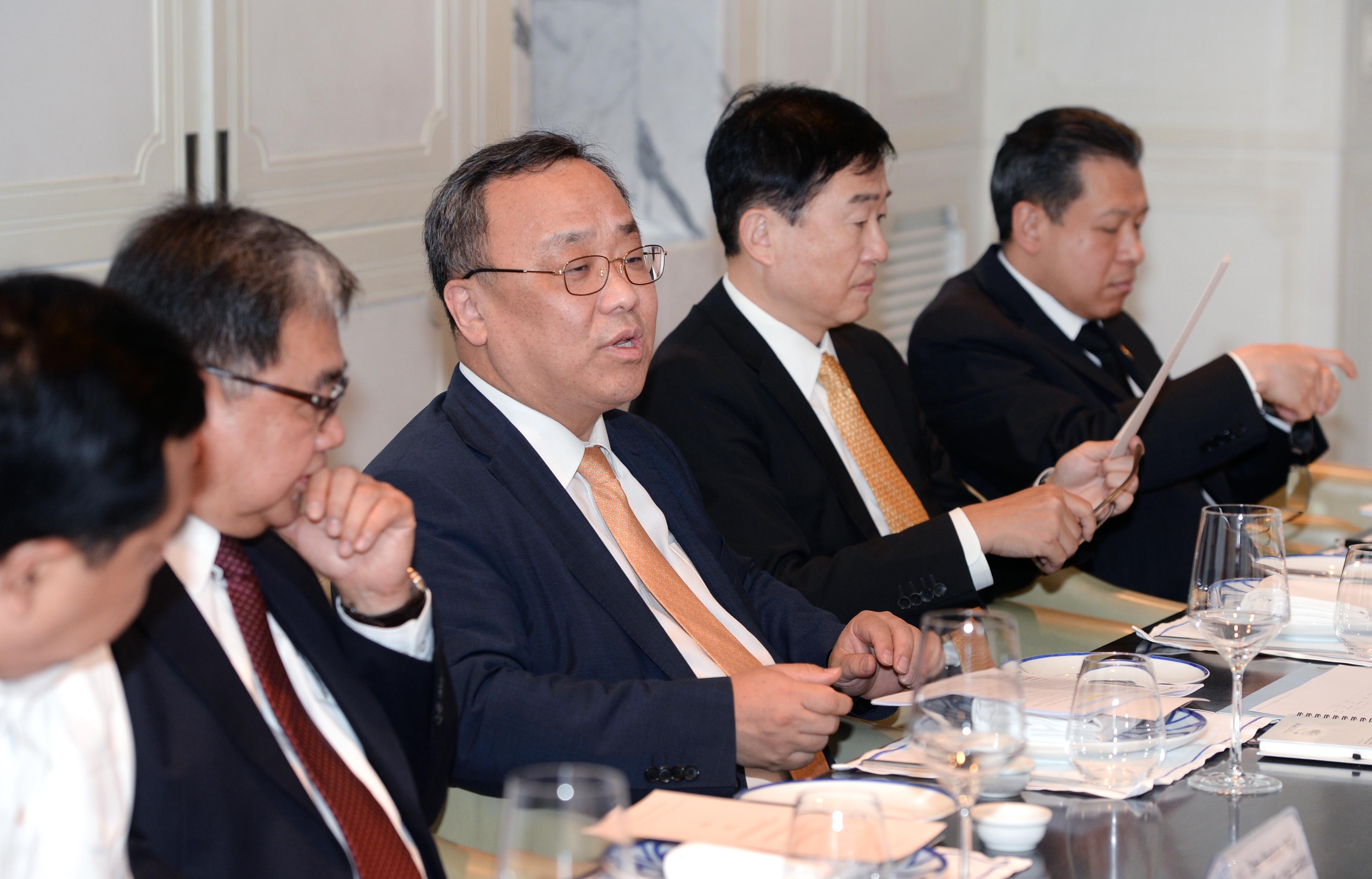 Deputy Minister for Trade Negotiations Lee Sang-jin (third from left) of the Ministry of Trade, Industry and Energy spoke in a luncheon with ambassadors of Southeast Asian countries to Korea in downtown Seoul on October 19. The luncheon was arranged for discussion on the Regional Comprehensive Economic Partnership (RCEP), the mega FTA under negotiations involving 16 countries in the Asia Pacific region including Korea and 10 member states of the Association of Southeast Asian Nations (ASE date2017-10-19