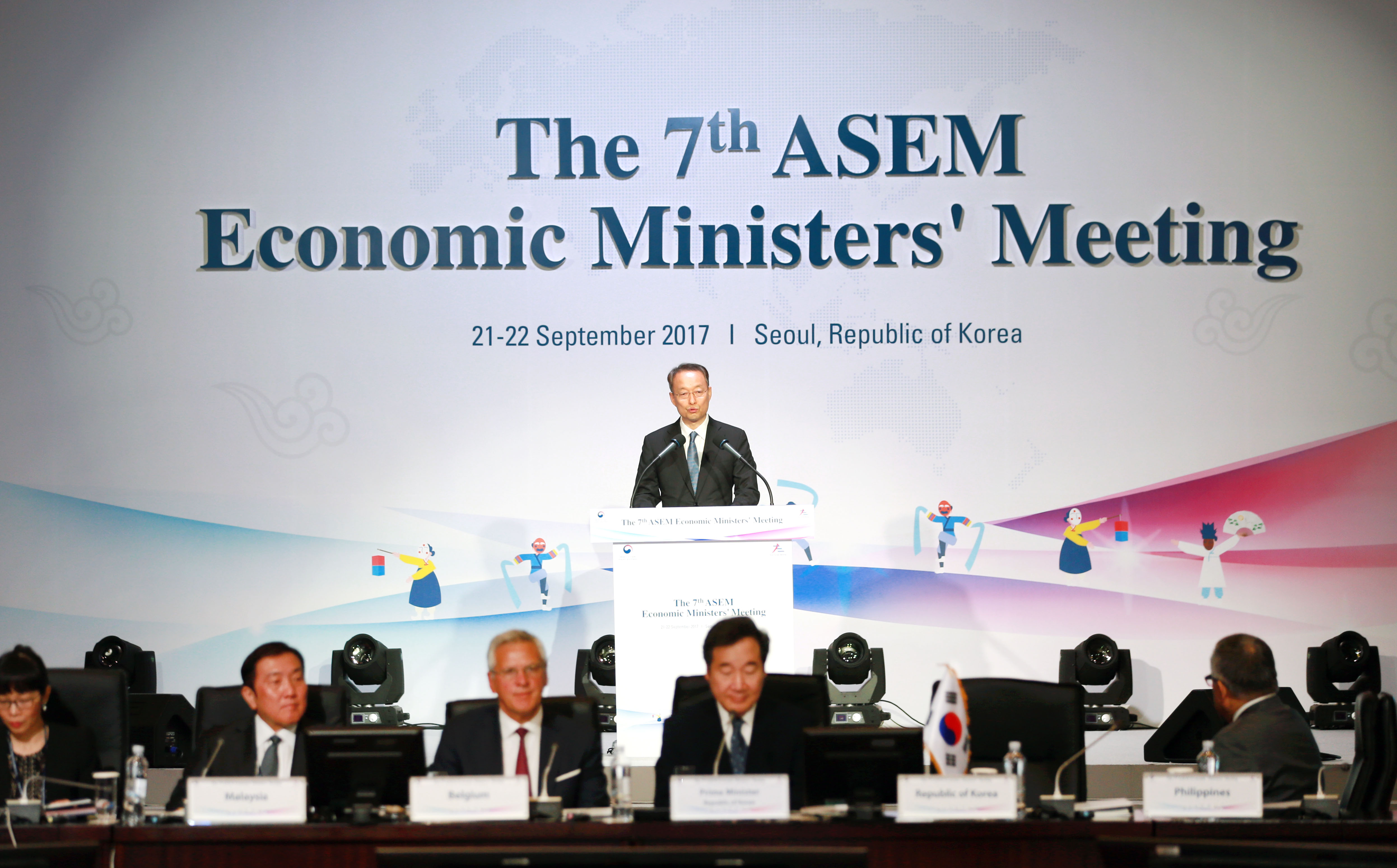 The Ministry of Trade, Industry and Energy announced on September 22 that members of the Asia-Europe Meeting (ASEM) voiced their support for free trade and multilateral trade regime at the seventh ASEM Economic Ministers’ Meeting (ASEM EMM) in Seoul. Economic ministers and high-level officials from the 51 ASEM members adopted a joint statement that supports multilateral trade system and calls for joint response to protectionism. The statement also urged ASEM members to make date2017-09-22