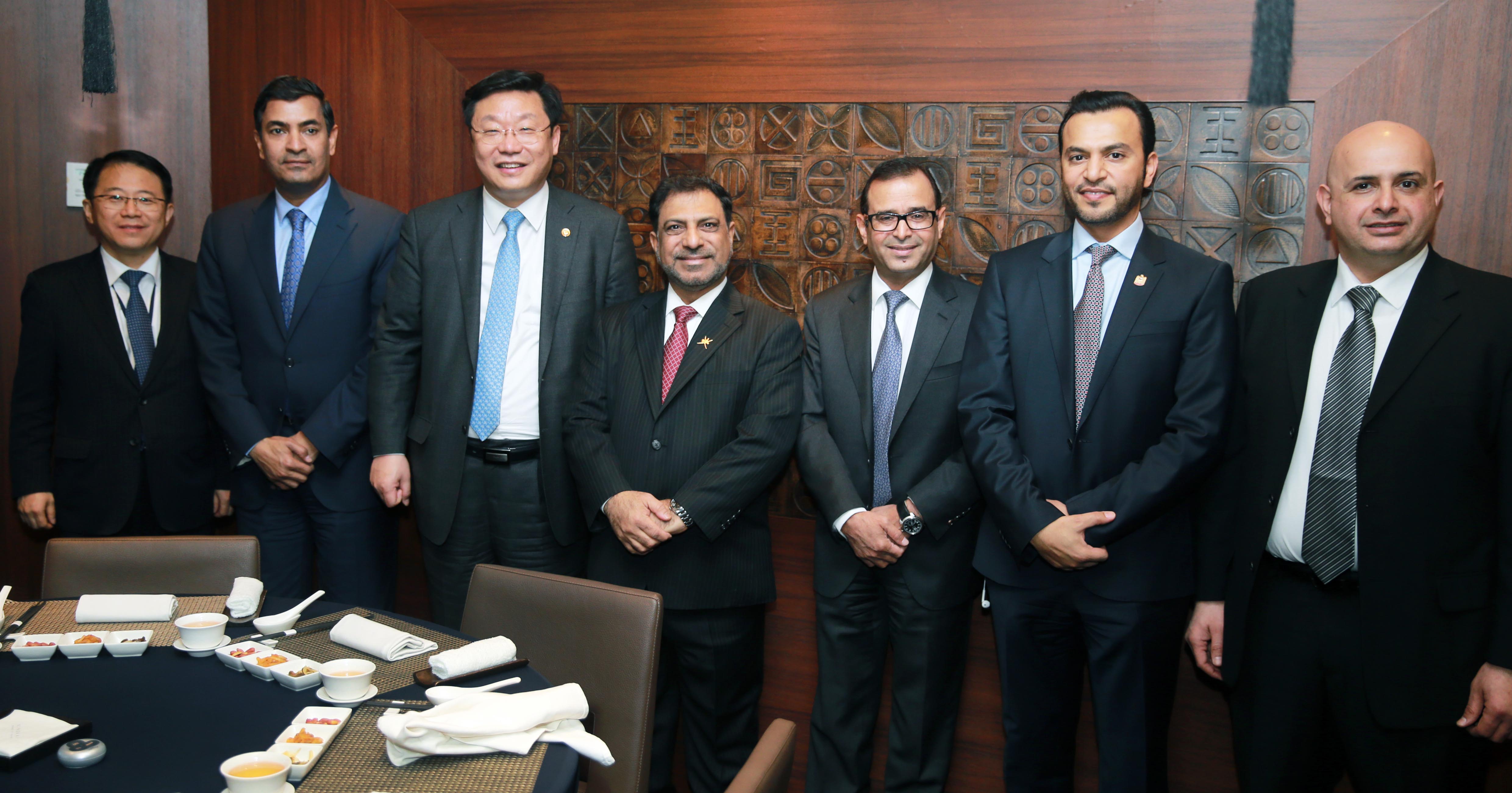 Trade, Industry and Energy Minister Joo Hyunghwan (third from left) posed for a photo with ambassadors of five member countries of the Gulf Cooperation Council at a dinner in Yeouido, Seoul, on March 16. From left are Trade, Industry and Energy Director General for Trade Cooperation Kang Myung-soo, Qatari Ambassador to Korea Mohamed bin Abdullah Al-Dehaimi, Minister Joo, Omani Ambassador Mohamed Salim Alharthy, Saudi Ambassador Riyadh bin Ahmed Al-Mubaraki, UAE Ambassador Abdullah Saif Al date2017-03-16
