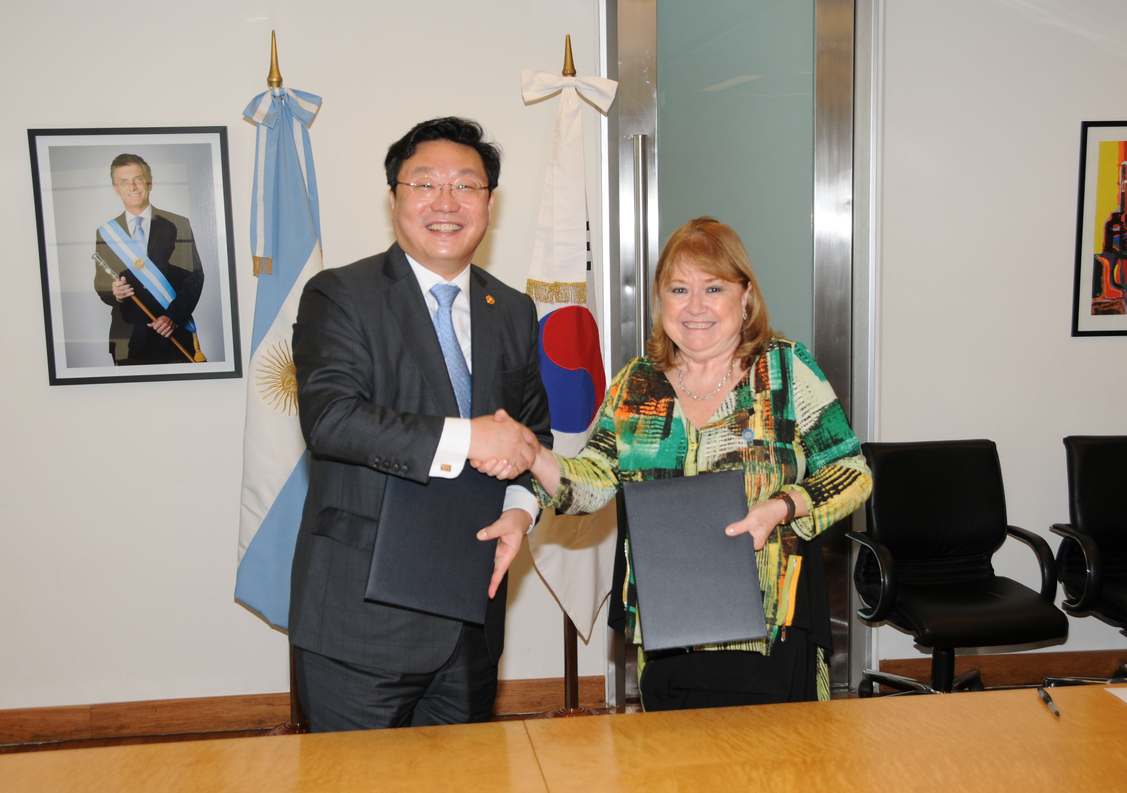 The Ministry of Trade, Industry and Energy announced on March 3 that Korea and Mercado Común del Sur (MERCOSUR) signed on March 2 a joint statement facilitating the launch of official negotiations for a multilateral trade agreement between Korea and four South American nations in the first half of this year. During his visit to Buenos Aires, Trade, Industry and Energy Minister Joo Hyunghwan signed the joint statement with Minister of Foreign Affairs and Worship Susana Malcorra of date2017-03-03