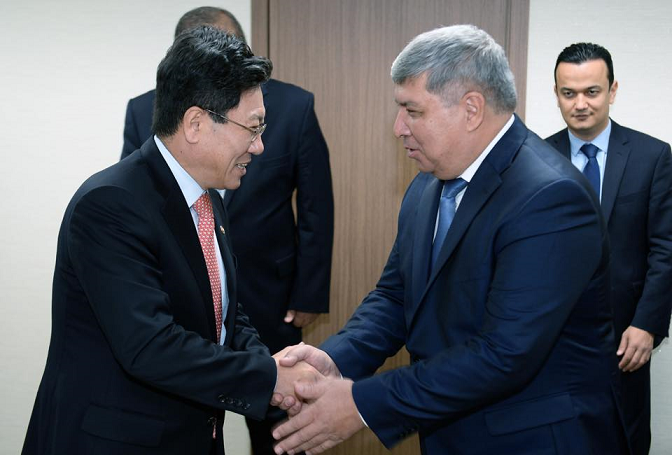 Minister of Trade, Industry and Energy Yoon Sang-jick received a visit by a government delegation from Uzbekistan led by Deputy Prime Minister Gulomjon Inomovich Ibragimov at his satellite office in Seoul over the weekend. During the visit, Minister Yoon and Deputy Prime Minister Ibragimov discussed ways to strengthen bilateral economic cooperation in energy, resources and other key areas between South Korea and Uzbekistan. date2015-10-13