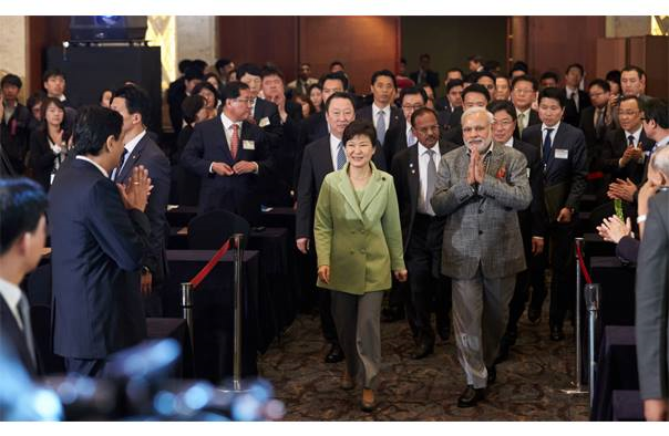 South Korea and India yesterday launched a joint forum for chief executives of top companies from both countries to promote bilateral business cooperation. President Park Geun-hye and India's Prime Minister Narendra Modi, who was on a two-day state visit to South Korea, attended the launching ceremony in Seoul. At the forum, about 300 business leaders, including Aditya Birla Group Chairman Kumar Manglam Birla, discussed ways to strengthen and move forward bilateral economic ties between the two countries. The Ministry of Trade, Industry and Energy (MOTIE) and India's Ministry and Commerce and Industry prepared the forum and hosted its first meeting together. date2015-05-20