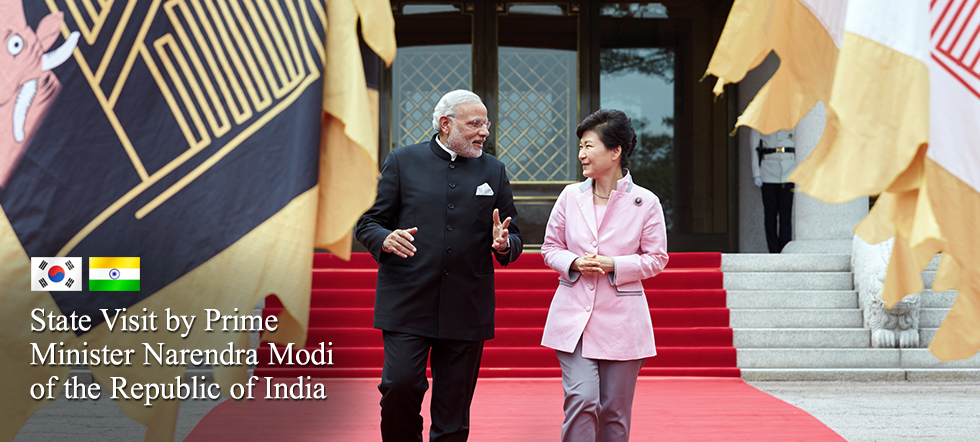 South Korean President Park Geun-hye and India's Prime Minister Narendra Modi agreed to upgrade the bilateral relationship of their countries to a `Special Strategic Partnership' during a summit Seoul yesterday. "India sees the ROK as an indispensable partner in its `Act East' strategy, and the ROK and India recognize the value of the bilateral partnership and its contribution to bringing peac The two countries also signed seven agreements covering trade, investment, double taxation, technology, energy, environment, culture, education, people-to-people exchange and regional and multilateral cooperation, according to the statement. Notably, South Korea expressed its intention to provide US $10 billion for mutual cooperation in infrastructure, comprising the Economic Development Cooperation Fund (US $ 1 billion) and export credits (US $ 9 billion) for priority sectors, including smart cities, railways, power generation and transmission, and other sectors to be agreed. PM Modi is on a two-day state visit to Seoul, the final destination on a three-nation tour that includes China, Mongolia and South Korea, which is aimed at strengthening India's ties with East Asian countries. For the full-text of the summit's joint statement, posted by Bihar Prabha: date2015-05-19