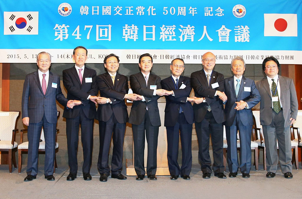 Business leaders from South Korea and Japan expressed support for a trilateral free trade agreement (FTA) between their countries and China, which has been under negotiation since November 2012. At the 47th Korea-Japan Businessmen Conference, the two neighboring countries also supported South Korea's participation in the U.S.-led Trans-Pacific Partnership (TPP), which is yet to be decided. In a congratulatory speech at the conference, the MOTIE's Vice Minister Moon Jae-do urged the business leaders to work more closely to help strengthen bilateral economic cooperation between South Korea and Japan. date2015-05-18