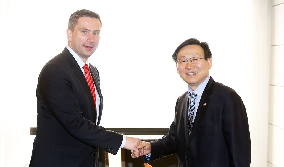 The MOTIE's 2nd Vice Minister Moon Jae-do held a meeting in Seoul last week with Martin Dulig, Germany's Saxon State Minister of Economic Affairs, Labour and Transport and Deputy Prime Minister, who is visiting South Korea to invite foreign investment to his state. During the meeting, the two exchanged ideas on ways to promote bilateral economic cooperation between South Korea and the German state, including research and development and high-tech technology related to semiconductors, automobiles and energy. date2015-05-20