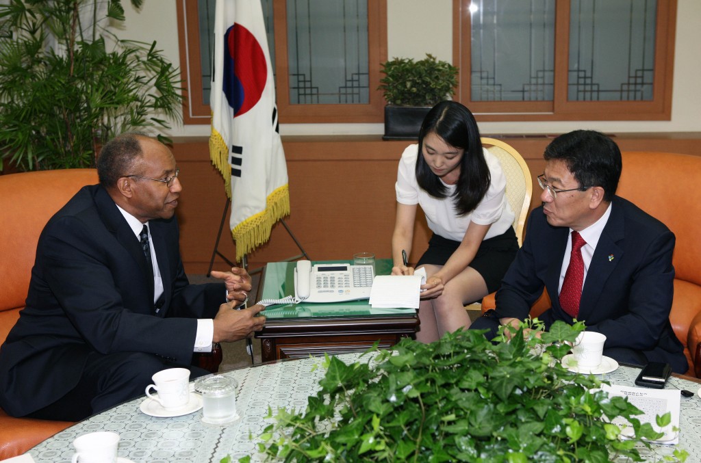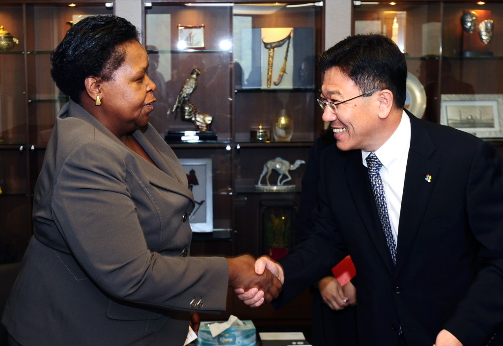 Korea, Mozambique Discuss Mineral Resources Minister of Trade, Industry and Energy Yoon Sang-jick greets his Mozambican counterpart Minister of Mineral Resources Esperança Bias on June 3 at the Gwacheon Government Complex. The two officials discussed how to expand bilateral ties in the gas and mineral resources sector. date2013-06-11