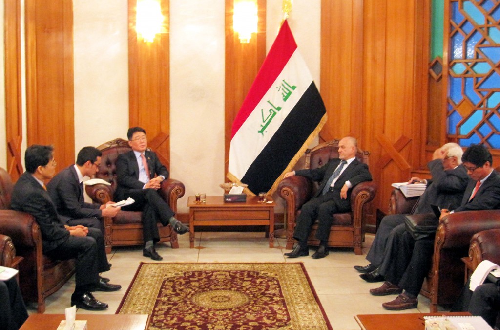 Vice Minister Visits Iraq Vice Minister for Trade and Energy Cho Seok meets with his Iraqi counterpart, Deputy Prime Minister for Energy Hussain Al-Shahristani, on March 16 in Baghdad to discuss energy cooperation. date2012-03-21