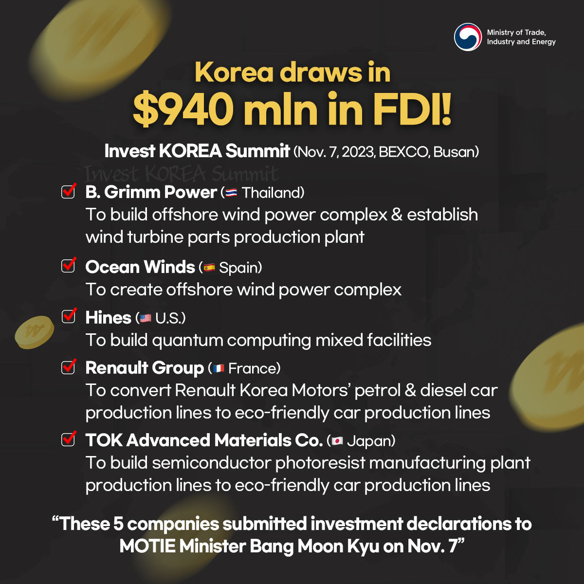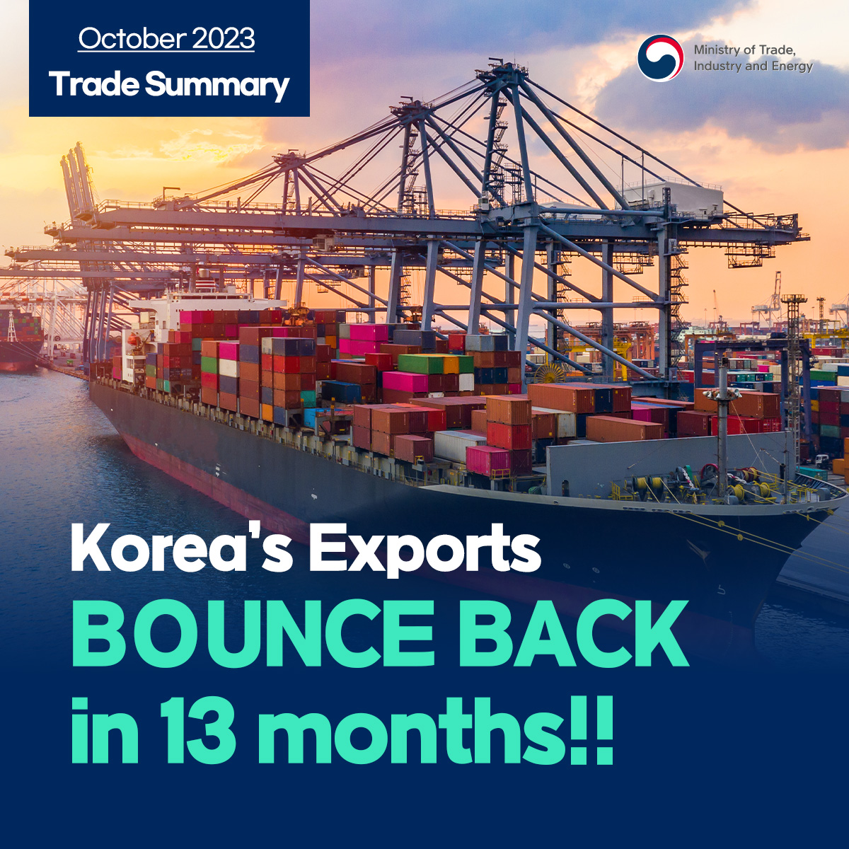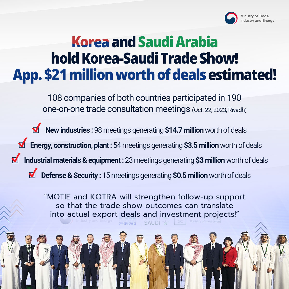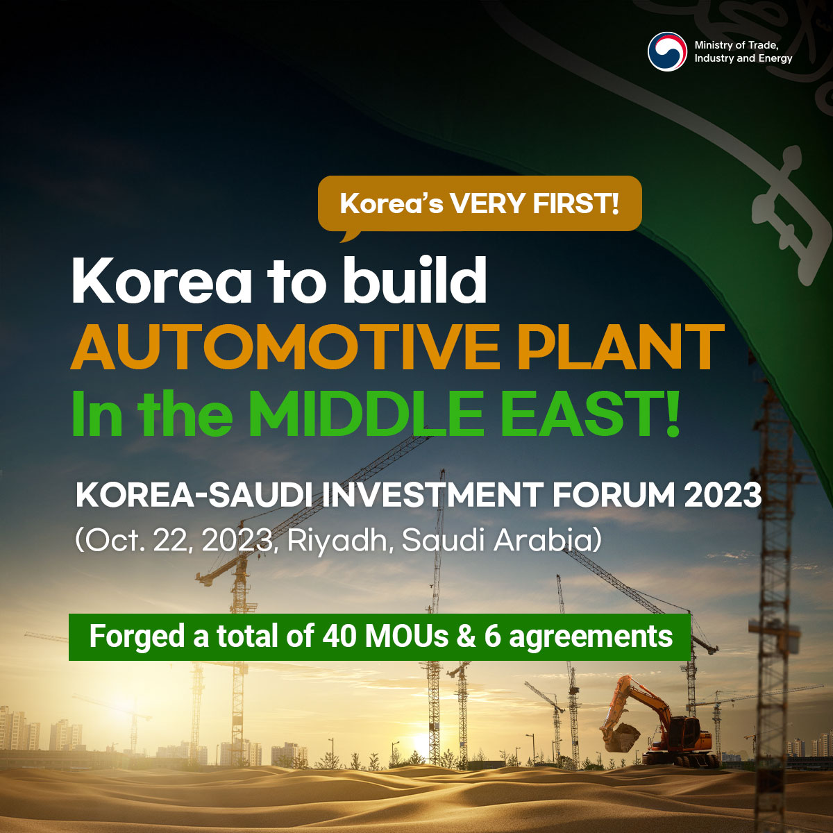 Korea's exports bounce back in October! date2023-11-15 hits35 View Details Korea's online & offline retail sales both smile wide! date2023-11-14 hits35 View Details Invest Korea Summit 2023 draws in 940 mln in FDI date2023-11-13 hits37 View Details Minister visits Latin America's hub country, Chile! date2023-11-13 hits34 View Details Korea wins $3.9 bln Qatar LNG carrier bid project! date2023-11-13 hits38 View Details Korea to build its very first automotive plant in the Middle East! date2023-11-13 hits69 View Details Korea-Saudi trade show generates an estimated $21 mln worth of deals date2023-11-10 hits35 View Details 10 MOUs signed at Korea-Qatar Business Forum! date2023-11-10 hits36 View Details Korean SMEs & middle-market firms in anticipation of expanding market presence in Qatar! date2023-11-09 hits36 View Details first pageprev page2627282930next pagelast page