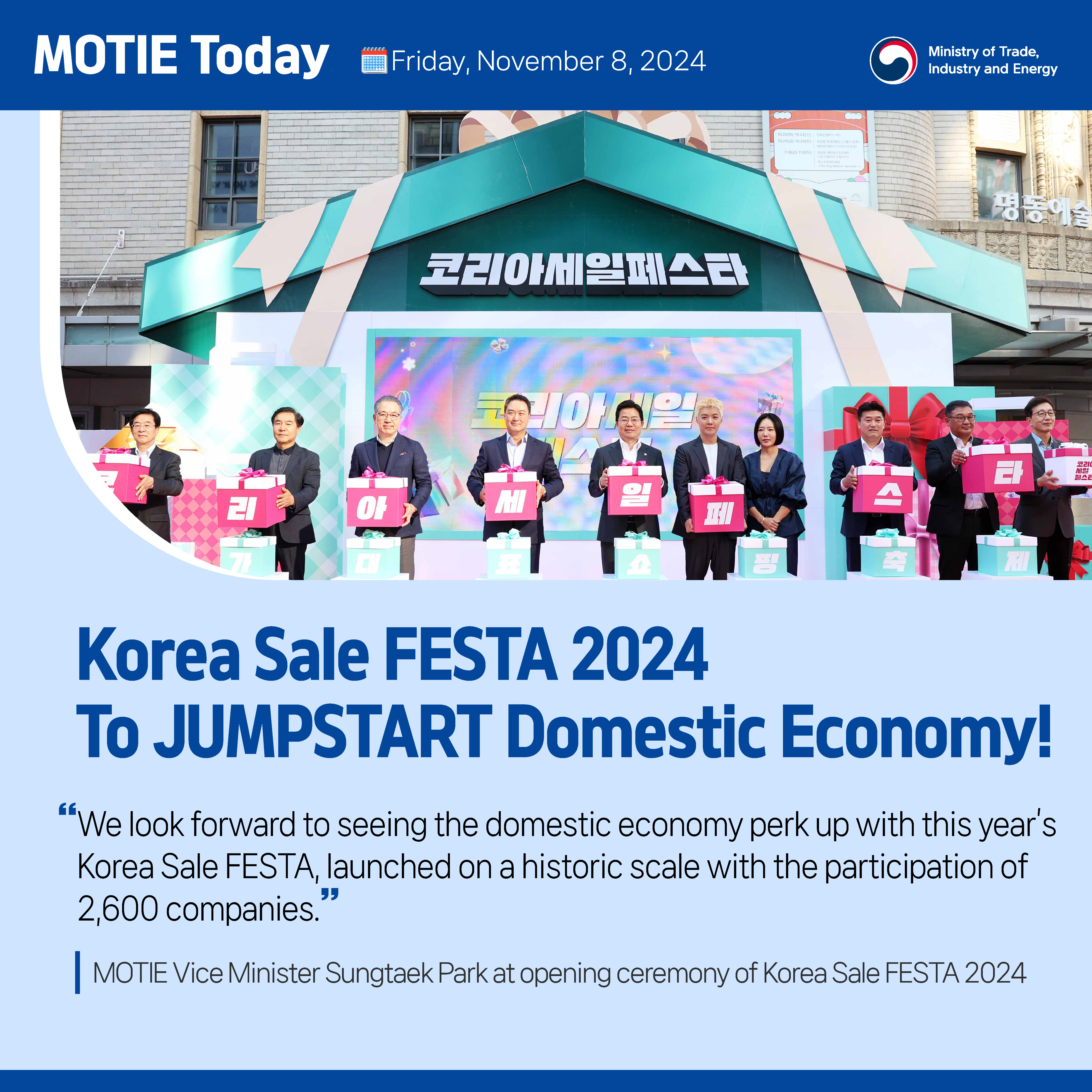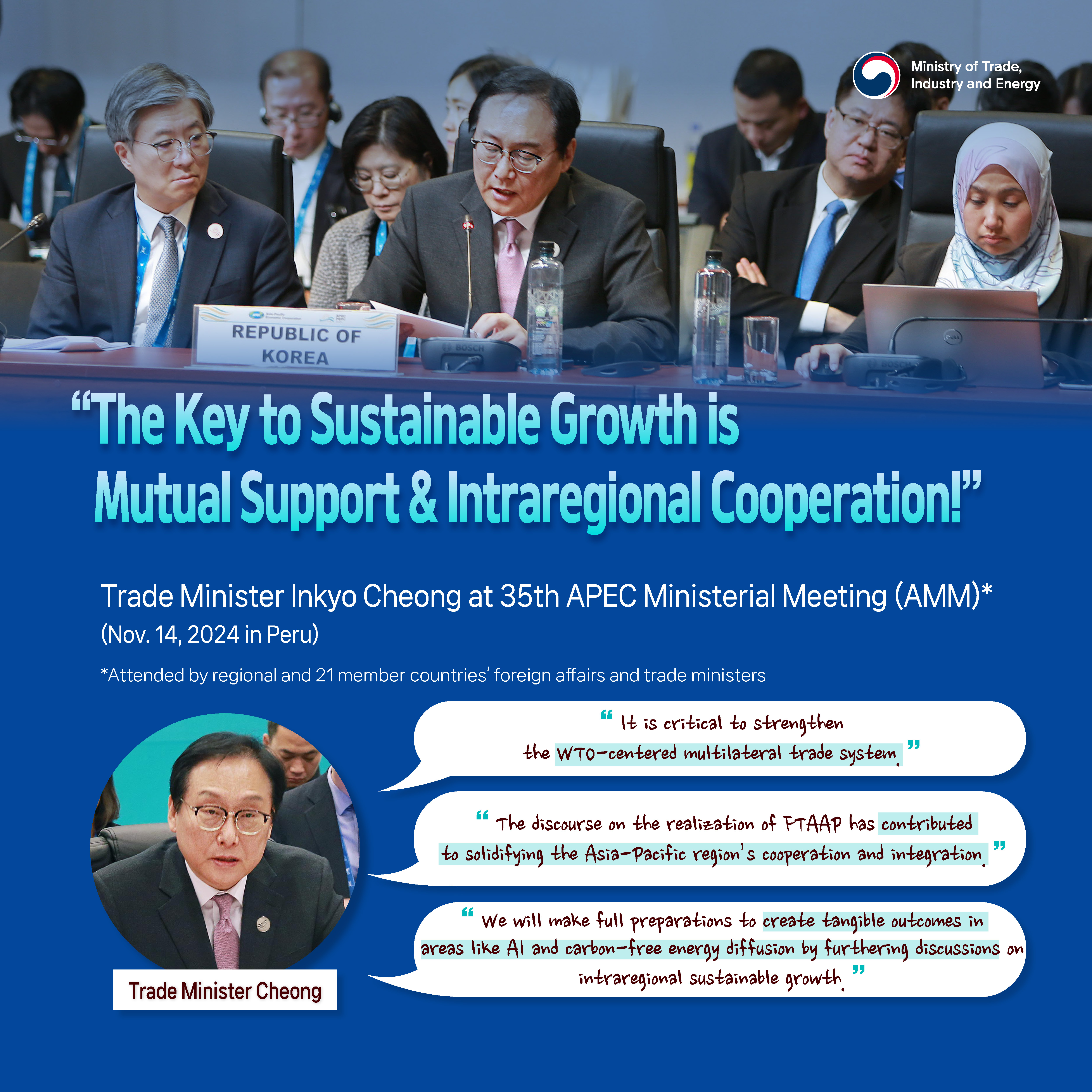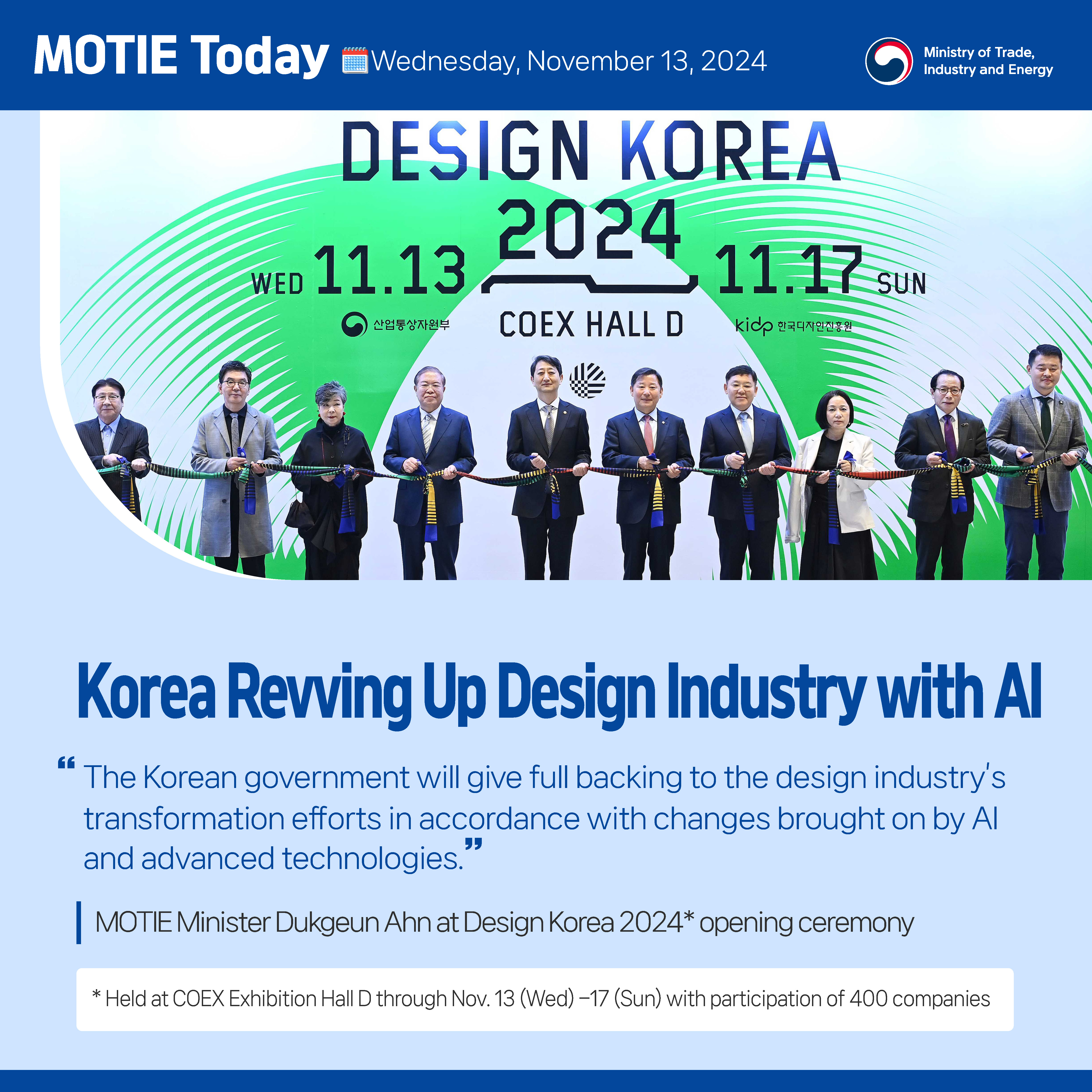 Korea & U.S. discuss stronger economic cooperation date2024-11-27 hits232 View Details Trade Minister Cheong attends 35th AMM date2024-11-27 hits218 View Details Korea revving up design industry with AI date2024-11-27 hits184 View Details Korea and Peru ink critical minerals supply chain cooperation MOU date2024-11-25 hits188 View Details Korea's auto industry sees triple growth in October date2024-11-25 hits127 View Details Korea's ICT exports hit all-time highs for October date2024-11-25 hits156 View Details 4th Global Trade Strategy Meeting date2024-11-18 hits213 View Details Korea Sale FESTA 2024 to jumpstart domestic economy date2024-11-18 hits167 View Details All 14 noncapital regions designated as ODZs date2024-11-15 hits200 View Details first pageprev page678910next pagelast page