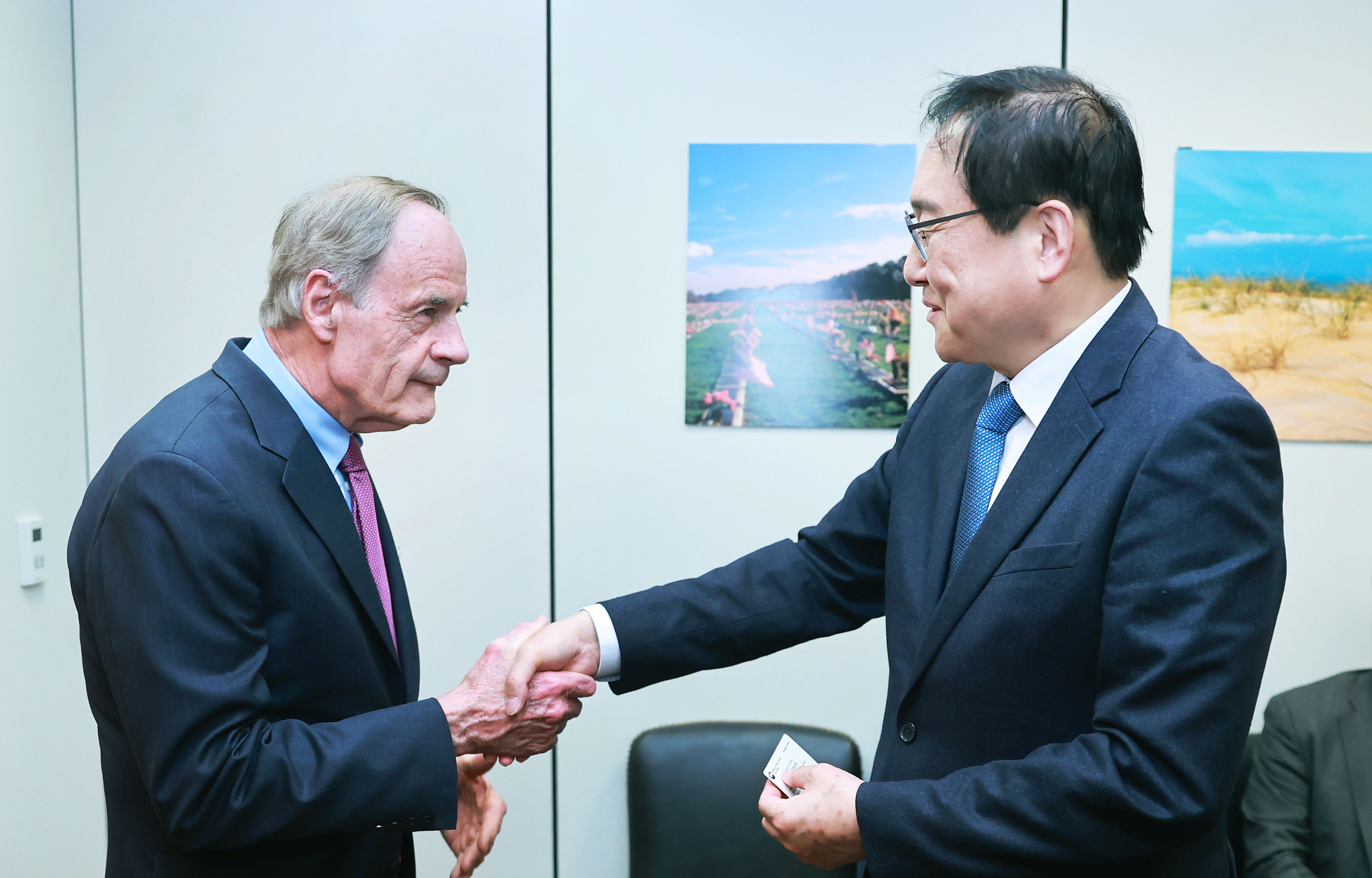 Trade Minister meets U.S. Representative Amerish B. Bera date2024-03-15 View Details Trade Minister meets U.S. Senator Tom Carper date2024-03-15 View Details Trade Minister meets Chairman of the Trade Subcommittee of the House Ways and Means Committee date2024-03-15 View Details Trade Minister meets CSIS President date2024-03-15 View Details Minister meets U.S.’ Senior Advisor to President Biden for International Climate Policy date2024-03-14 View Details Trade Minister meets Singapore's Ambassador to Korea date2024-03-14 View Details Vice Minister chairs pan-ministerial consultative committee for high-tech specialization complex date2024-03-14 View Details Minister chairs public-private joint Battery Alliance meeting date2024-03-11 View Details 12th Korea-Denmark Green Growth Alliance date2024-03-11 View Details first pageprev page6667686970next pagelast page